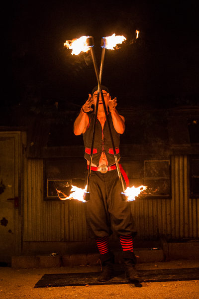 Hauptbühne Mittelaltermarkt zur Fürther Freiheit, Fürth, BayernFoto @Florian_Trykowski Oscar der Gaukler mit seiner großen Feuershow.