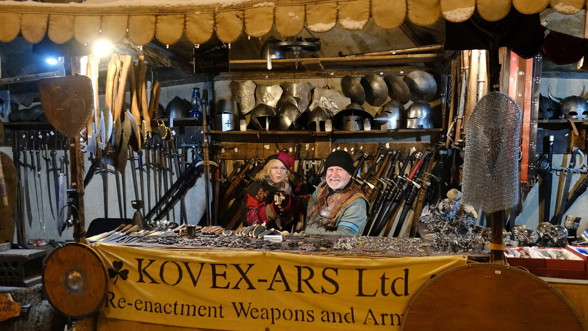 aus böhmisch Landen zeigen sie Handwerkskunst vom Feinsten und haben ein großes Sortiment an „Meinungsverstärkern“ – Schwerter, Streitäxte, Morgensterne…