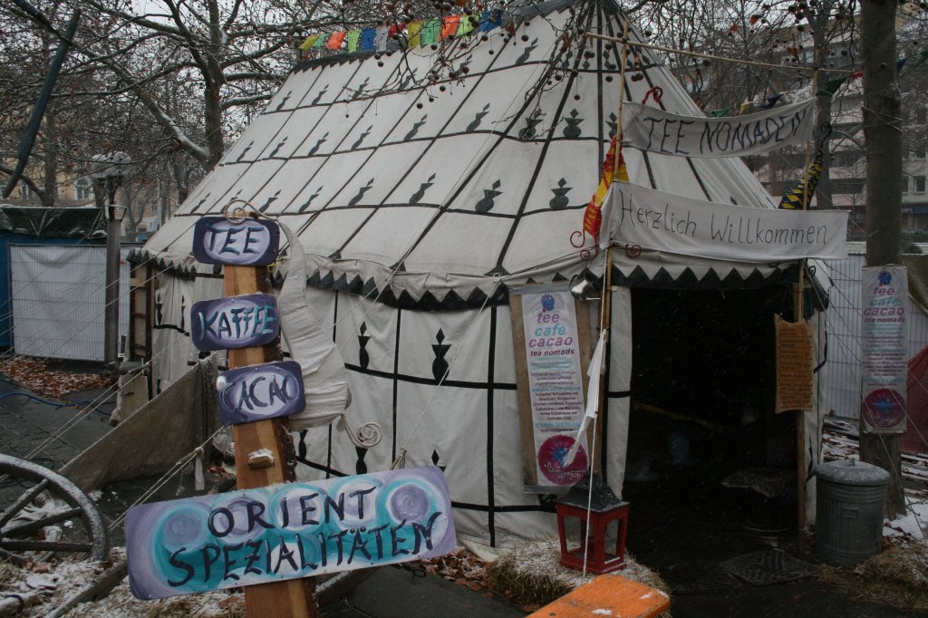 feinster Kaffee, Tee, Chai, Lumumba Grog uvm. wärmen Herz und Glieder. Das gemütliche Teezelt lädt ein zum entspannen und verweilen….
