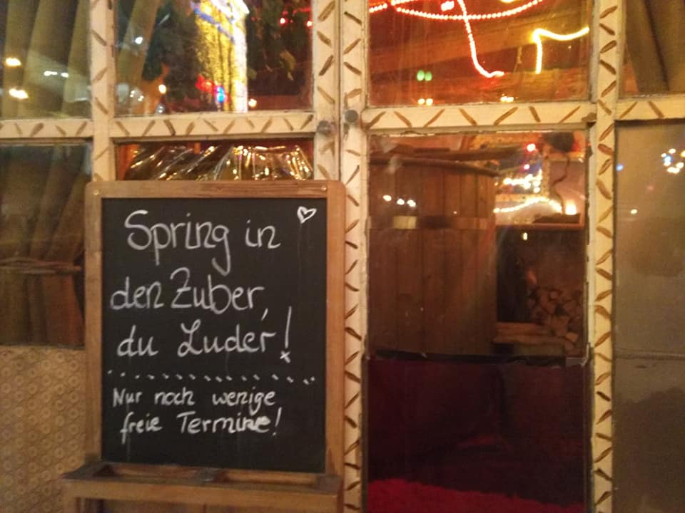 Die Zubabar – das Badehaus mit Ausschank – hat ihre Homebase auf dem mittelalterlichen Weihnachtsmarkt auf der Fürther Freiheit und bietet leckerste Getränke in toller Atmosphäre rund um den Zuber. Heißer Mojito, Piratenbrause, Rumtopf und und und…. auch alkoholfrei und zum Mitnehmen.